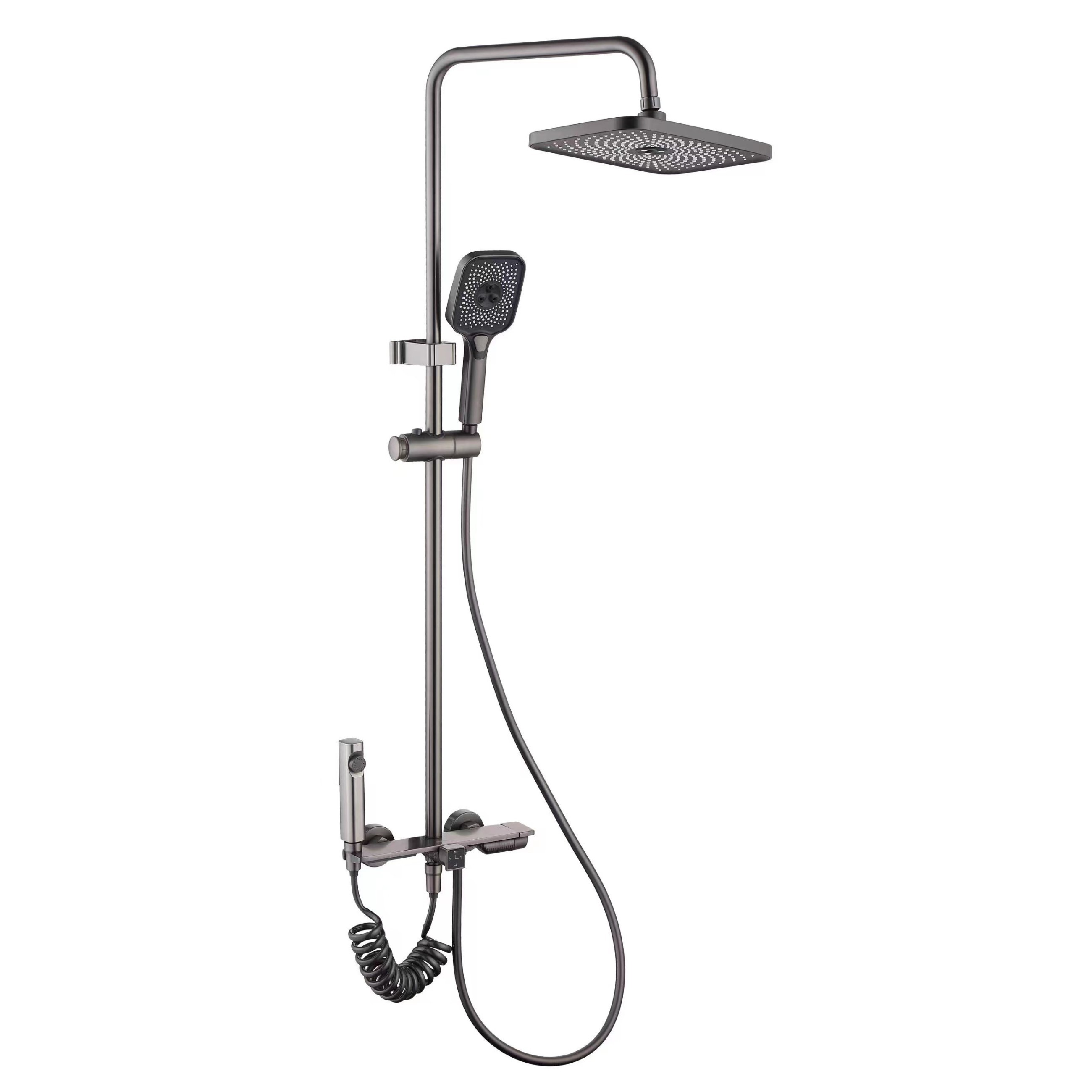 太陽雨花灑/精銅槍灰/四出水大淋浴/超長大平面置物/9寸方頂噴/PVC軟管/三功能自潔手持/獨立噴槍/LD1021